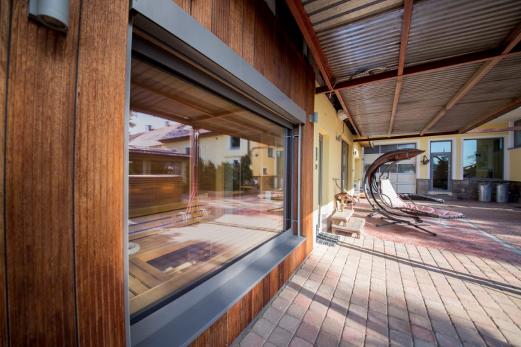 Saunu Klafs jsme realizovali pro klienta s rodinným domem ve Středočeském kraji. Pro saunu byl vyhrazen nově přistavěný zkosený prostor navazující na předsíň domu. Zkosená střecha se ale do projektování sauny příliš nepromítla, a tak rodině nabízí poměrně velkou místnost odpočinku a regenerace – navíc s otevřeným výhledem do zahrady!