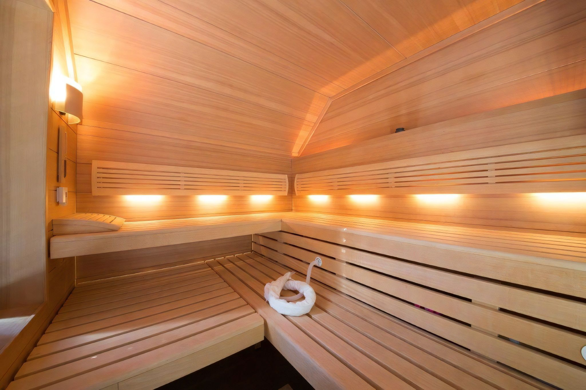 Klient si dále do sauny zvolil kyslíkový systém SANO 2, který zvyšuje koncentraci kyslíku a působí tak blahodárně na lidský organismus: pomáhá s regenerací, zlepšuje koncentraci a paměť, a současně navrací tělu svěžest a „mladistvý pocit“. Trubici s náustkem si jednoduše přiložíte k ústům a zhluboka se nadechnete do okamžiku absolutního uvolnění.