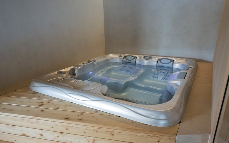 Posledním produktem, který jsme v tomto projektu dodávali byla vířivá vana Capri řady 880 americké firmy Sundance Spas. Tento model hydromasážní vany patří se svými rozměry 176 x 209 x 78 cm k menším vířivkám, přesto nabízí prostor pro 3 dospělé osoby. 31 hydromasážních a 8 vzduchových trysek rozmístěných na třech různých masážních sedadlech se postará o uvolnění celého těla, a navíc vířivá vana vestavěná do dřevěné podesty i skvěle vypadá.