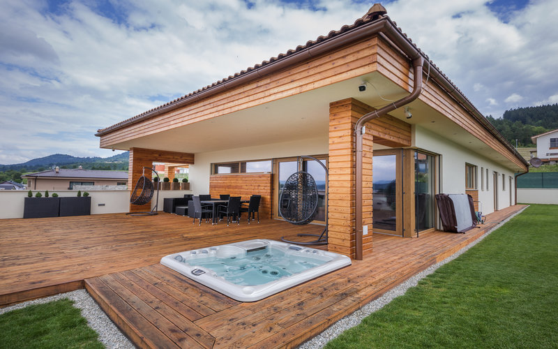 V nově vybudované zástavbě nedaleko Žiliny najdete krásné moderní domy – a právě k jednomu z nich jsme instalovali prémiovou vířivou vanu Cameo řady 880 výrobce Sundance Spas. Na přání zákazníka jsme hydromasážní vanu vestavěli do přilehlé dřevěné terasy, která je situována u zadního vchodu domu do zahrady. Díky kvalitním použitým materiálům, inovovanému filtračnímu systému a nadstandardnímu zateplení si náš zákazník může užívat vodní terapii 12 měsíců v roce – ať už za slunečného letního počasí, tak za mrazivých zimních dnů!