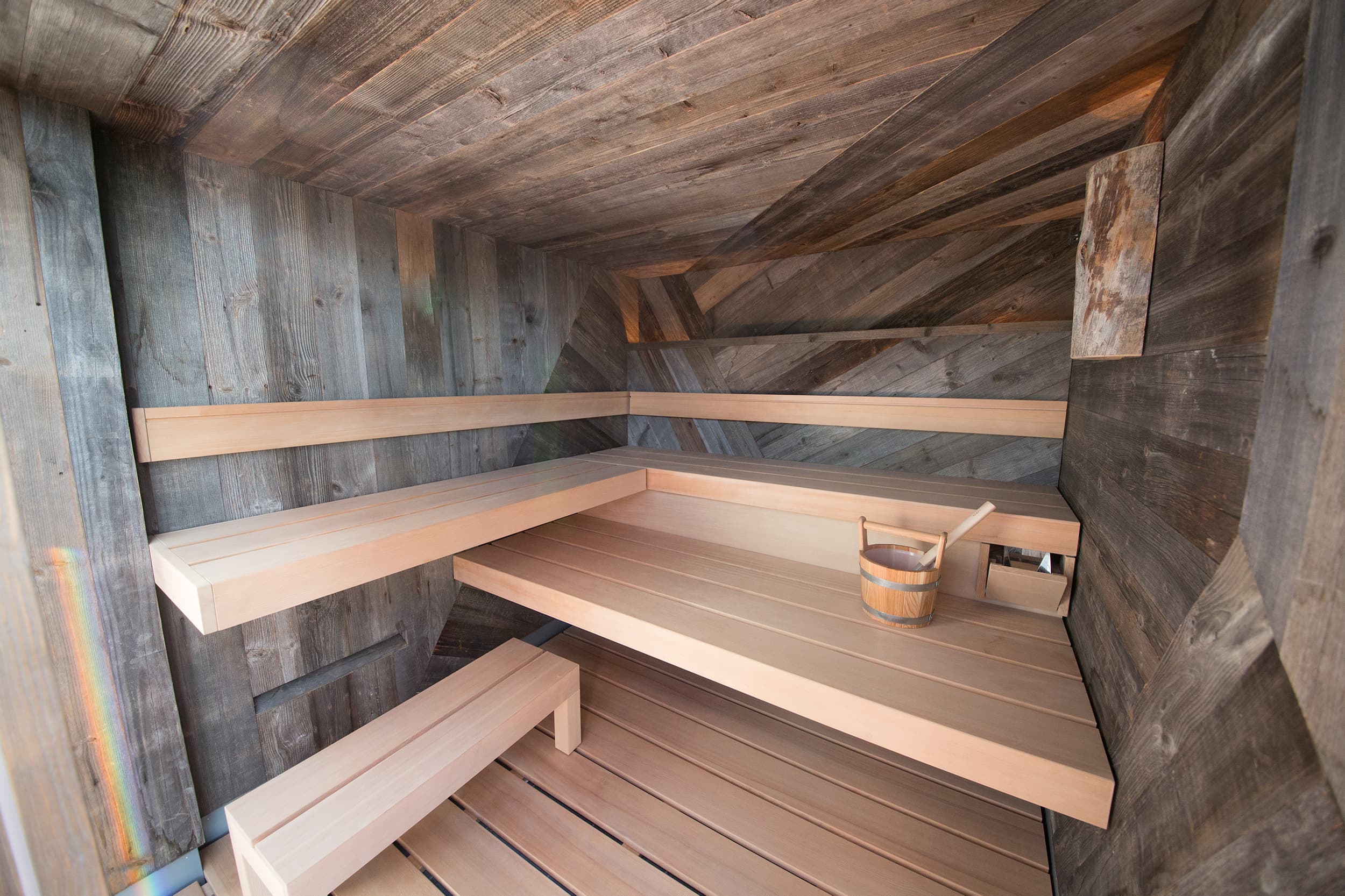 Voľba materiálu má vplyv nielen na dizajn projektu, ale aj na správne fungovanie a vaše pohodlie. Na vnútorné obloženie stien sú vhodné drevá s vysokou tepelnou vodivosťou zaisťujúce intenzívne sálavé teplo. Lavice sú, naopak, vyrobené tak, aby ani po veľkom zahriatí nepálili na dotyk a umožnili ničím nerušenú relaxáciu.